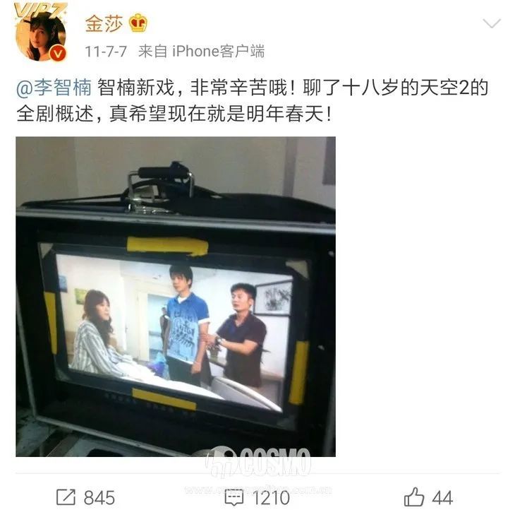 11年二人畅聊《十八岁的天空2》,金莎说真希望现在就是明年春天!李智楠转发,是啊是啊,昨天聊得很嗨!