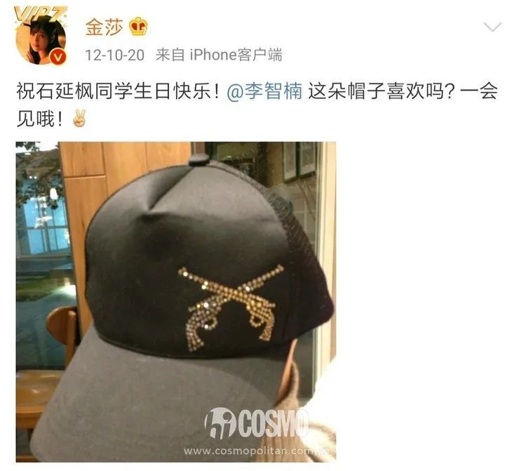 12年李智楠生日,金莎准备了一顶很闪的帽子做生日礼物。李智楠回应,“谢谢莎妞。”