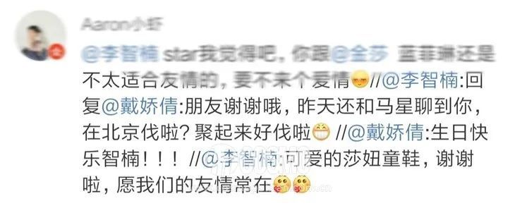 16年李智楠还主动cue过金莎歌曲的名字,“全世界我只贪一个他”。剧粉在评论里大喊“男未婚女未嫁,请两位把友情升级为爱情吧。”