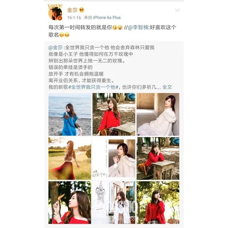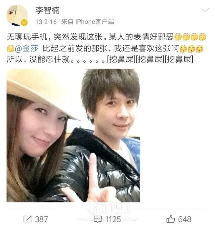 他俩之间保存着一种默契,每当金莎发新歌时,李智楠一定是第一时间转发的。