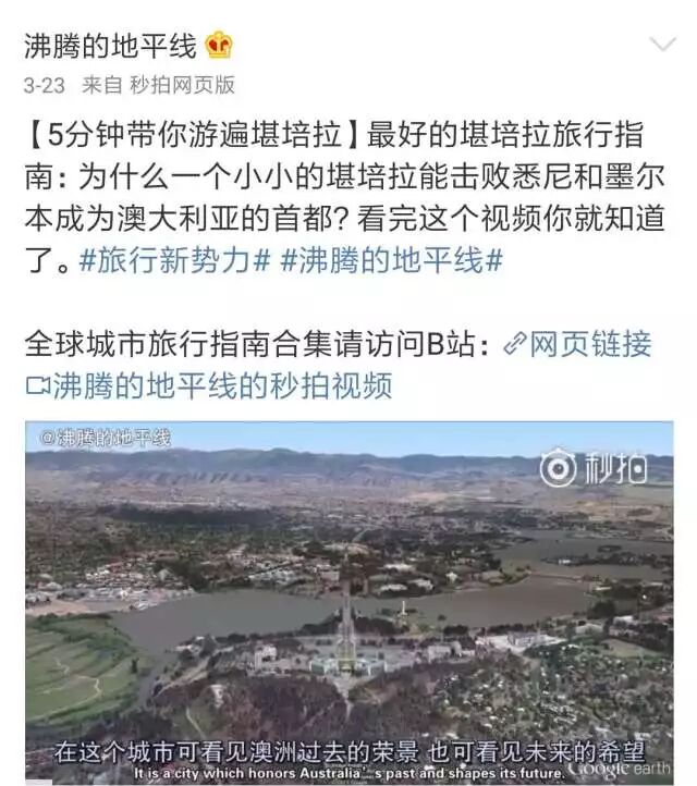 在他的微博中会推送一系列五分钟的旅行指南,而且全球的各种旅行热门城市都能在里面找到。香港、墨尔本,各种城市,旅行指南了解一下。