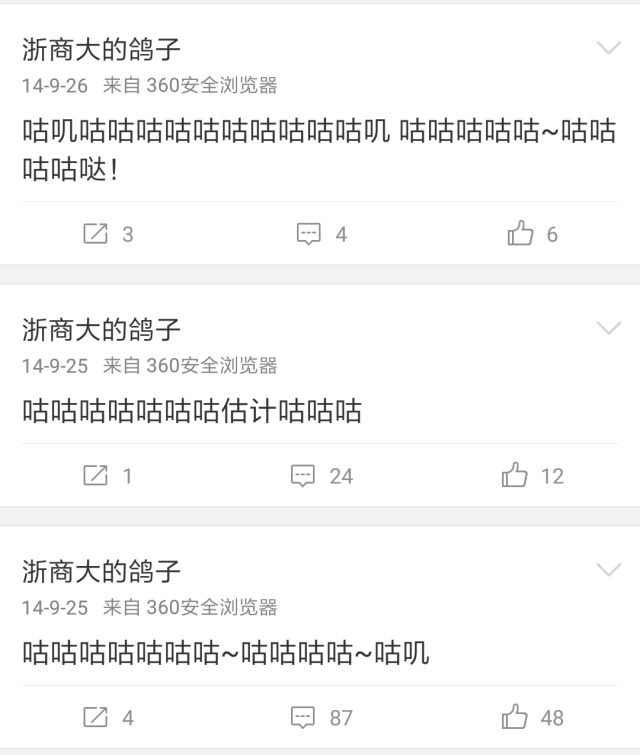 这个微博名为浙商大的鸽子的博主,只会咕咕叫。