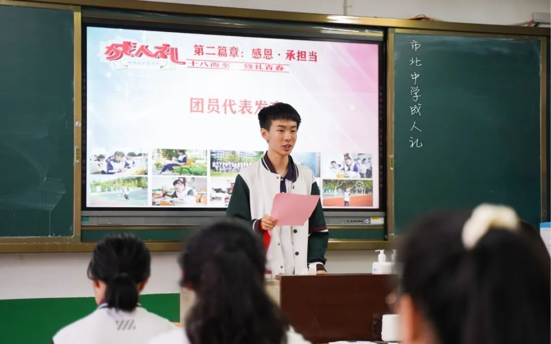 自然四季,终于冬藏;人生一世,发于青年。首先,我代表市北中学全体老师、高一高二的学弟学妹们祝贺你们!祝贺你们十八岁成人了!同时向养育陪伴你们的父母表示衷心的感谢,向孜孜不倦育人成才的老师们致以崇高的敬意!