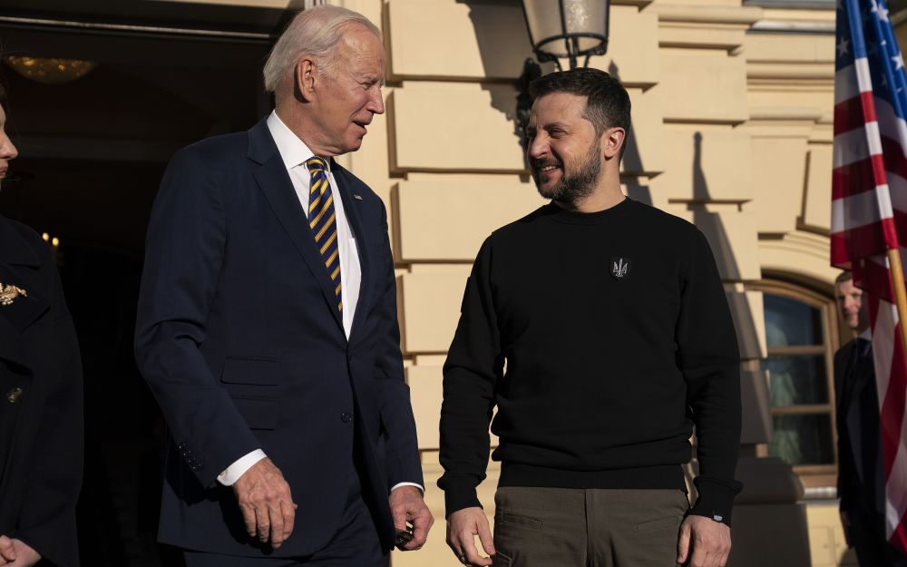 当地时间2月20日,乌克兰基辅,拜登与泽连斯基会面。图/视觉中国