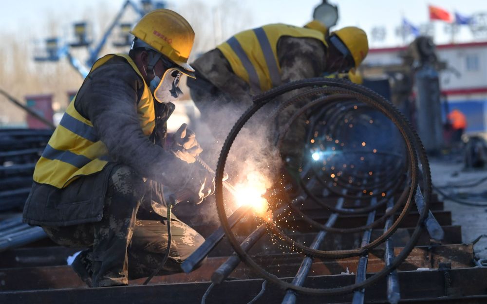 地铁12号线东坝车辆段,工人们正在施工。新京报记者 王贵彬 摄