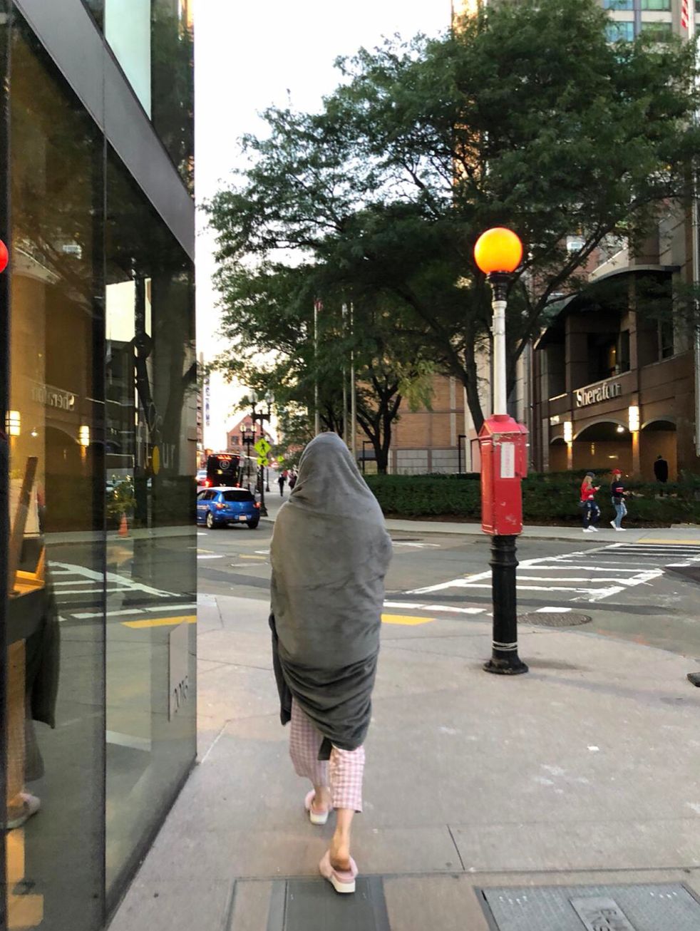 在朋友的镜头里,欧阳娜娜穿着棉拖披着毯子行走在街头,放飞的样子更是瑟瑟发抖的芒妈本人。