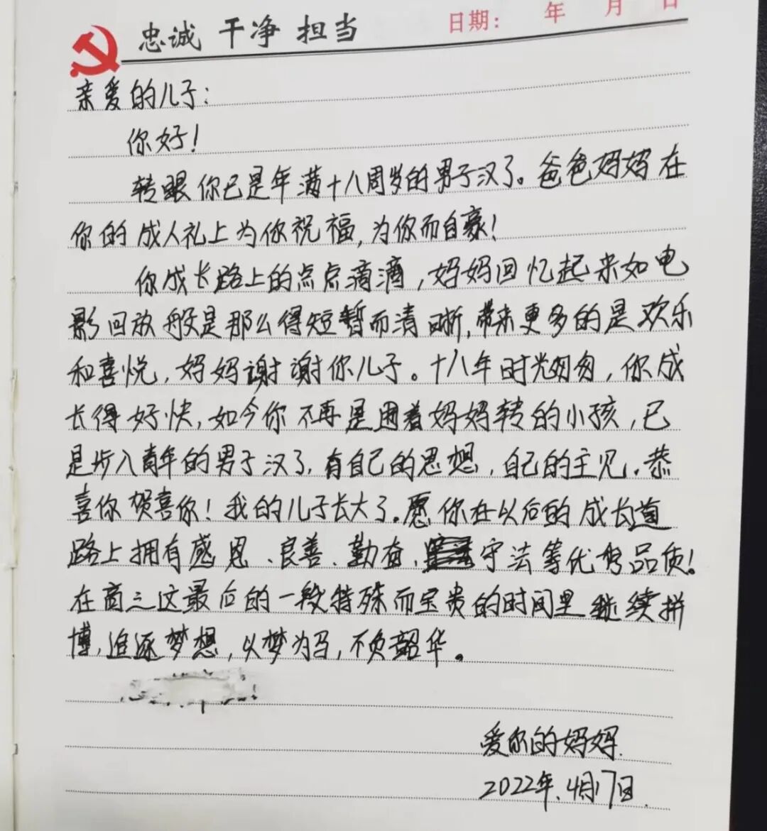 人生一世,总有些片段当时看无关紧要,而事实上却牵动了大局。4月17日,我校为2022届高三学子举行了隆重的成人礼,无论是家长还是老师,都在用自己的方式为他们的成人礼留下浓墨重彩的一笔。