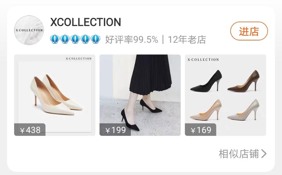 这款是来自一家叫 xcollection 的12年淘宝老店的高跟鞋,她们家的鞋大多都是基本款,性价比很高,穿起来舒服又好看。