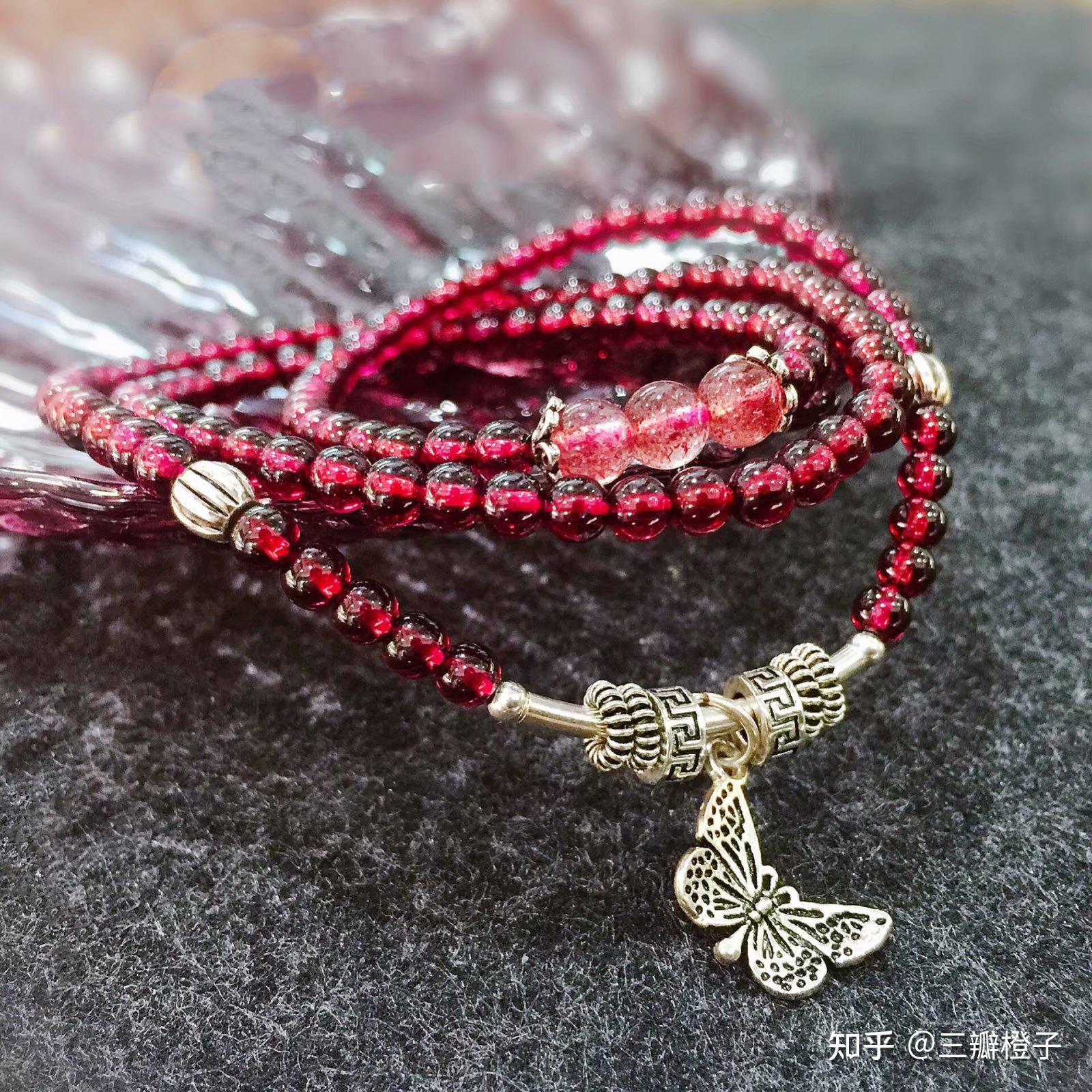 [原创天然酒红石榴石近净体水晶手链](色泽靓丽的石榴石,净体干净,几乎没杂质的为上品,题主可以要求店主打灯光看内里是否含黑点,越多越次!要买少杂,接近净体的送礼才最好)