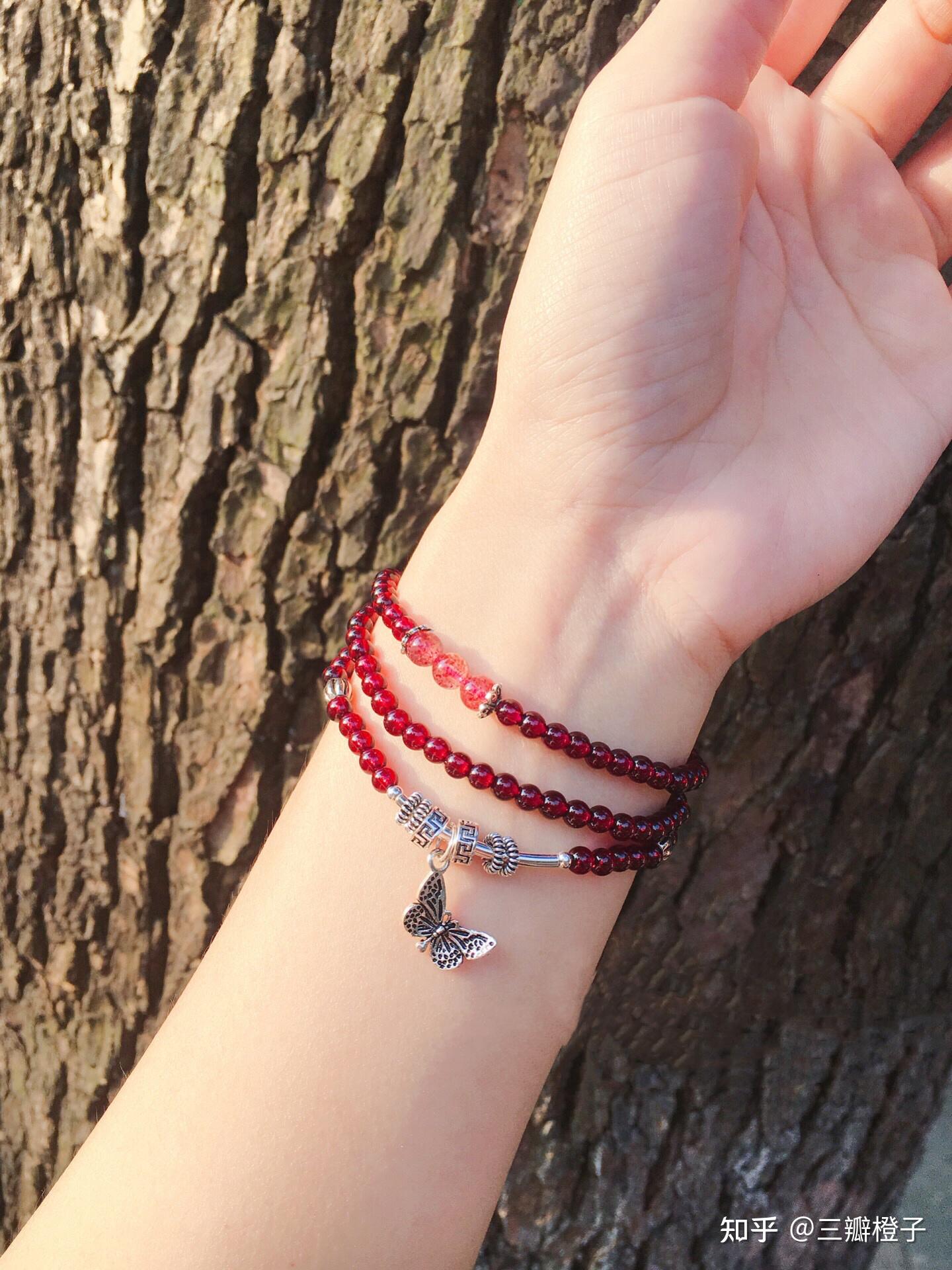 三圈的石榴石手链更富层次,上手显肤白,衬气质的设计师款,也适合女生日常的穿戴搭配