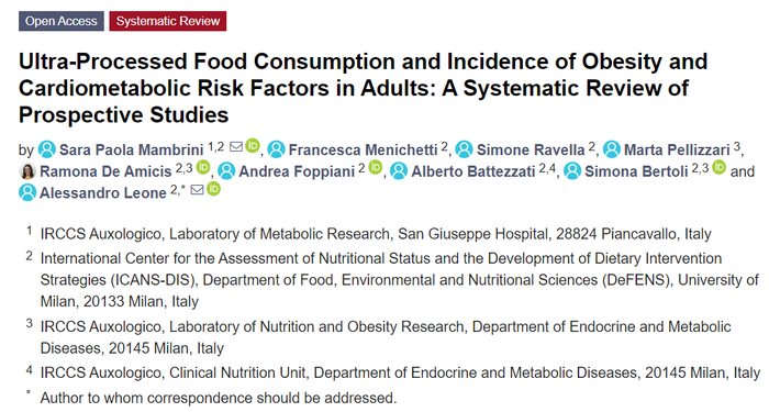 近日,顶级营养学期刊Nutrients发表重磅系统性综述,基于所有可用的前瞻性研究的数据详细总结了超加工食品与成人肥胖症发生率以及心脏代谢风险因素之间的关系。值得关注的是,纳入的所有研究均报告超加工食品摄入与超重/肥胖症的发生风险升高相关。不仅如此,绝大多数研究证据支持,超加工食品与血脂异常、高血压以及糖尿病的发病风险升高有关。