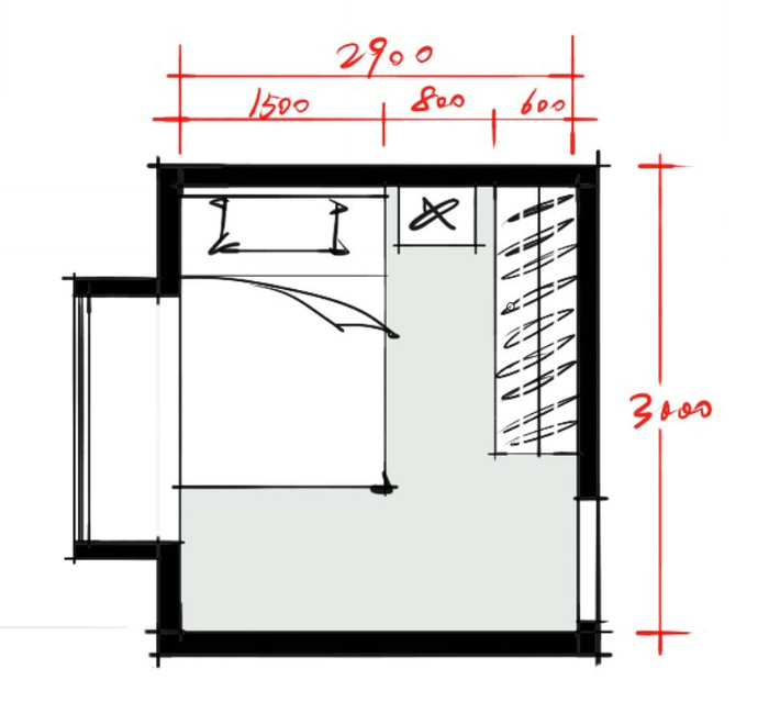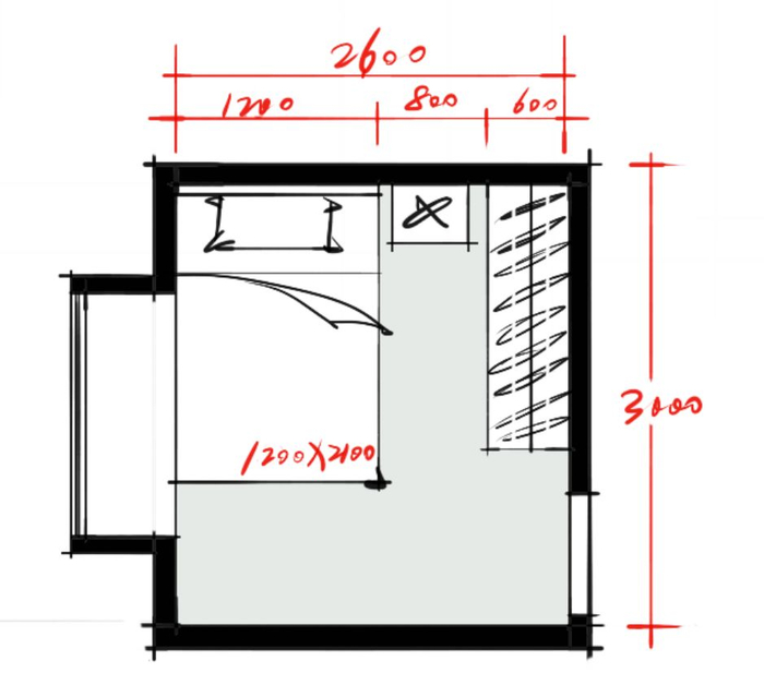 卧室的家具除了必备的衣柜与床,卧室备选的家具则是对床大小影响比较大的因素了,比如要摆放床头柜的情况,那么床两侧就必须要要预留出对应的位置,但不要床头柜的话却可以把床靠墙布置。