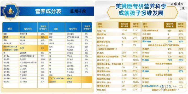 美赞臣蓝臻4段和安学健A+5段奶粉营养成分表特殊配比奶粉