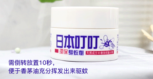 使用前将瓶子倒置10秒,让香茅油浸湿海绵,再瓶盖朝上置于需要驱蚊的地方,撕开锡箔纸。