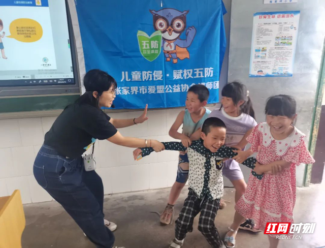 儿童是祖国的未来,加强安全教育,掌握必要的安全常识,提高自我保护的意识和自救能力,对儿童的健康成长显得尤为重要。近年来,张家界市救助管理站(未成年人保护中心)携手张家界市心益行社会工作服务中心和张家界市爱盟公益协会等社会组织,以“中心+社工+志愿者”的团队模式开展关爱未成年人相关工作,组织公益讲师走进乡镇,让更多孩子受益,通过儿童“五防”公益课堂,帮助儿童提升应对各种侵害的自我保护意识和能力,努力预防或避免各类侵害,四年来累计为近10000名以留守儿童为主的未成年人送去“五防”安全知识。