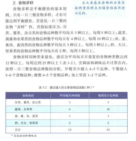 等等这些食物种类和摄入量都要满足才行,而且在这些基础上还要做到食物多样性,也就是每日摄入12种以上的食物,每周摄入不重复的25种以上的食物种类: