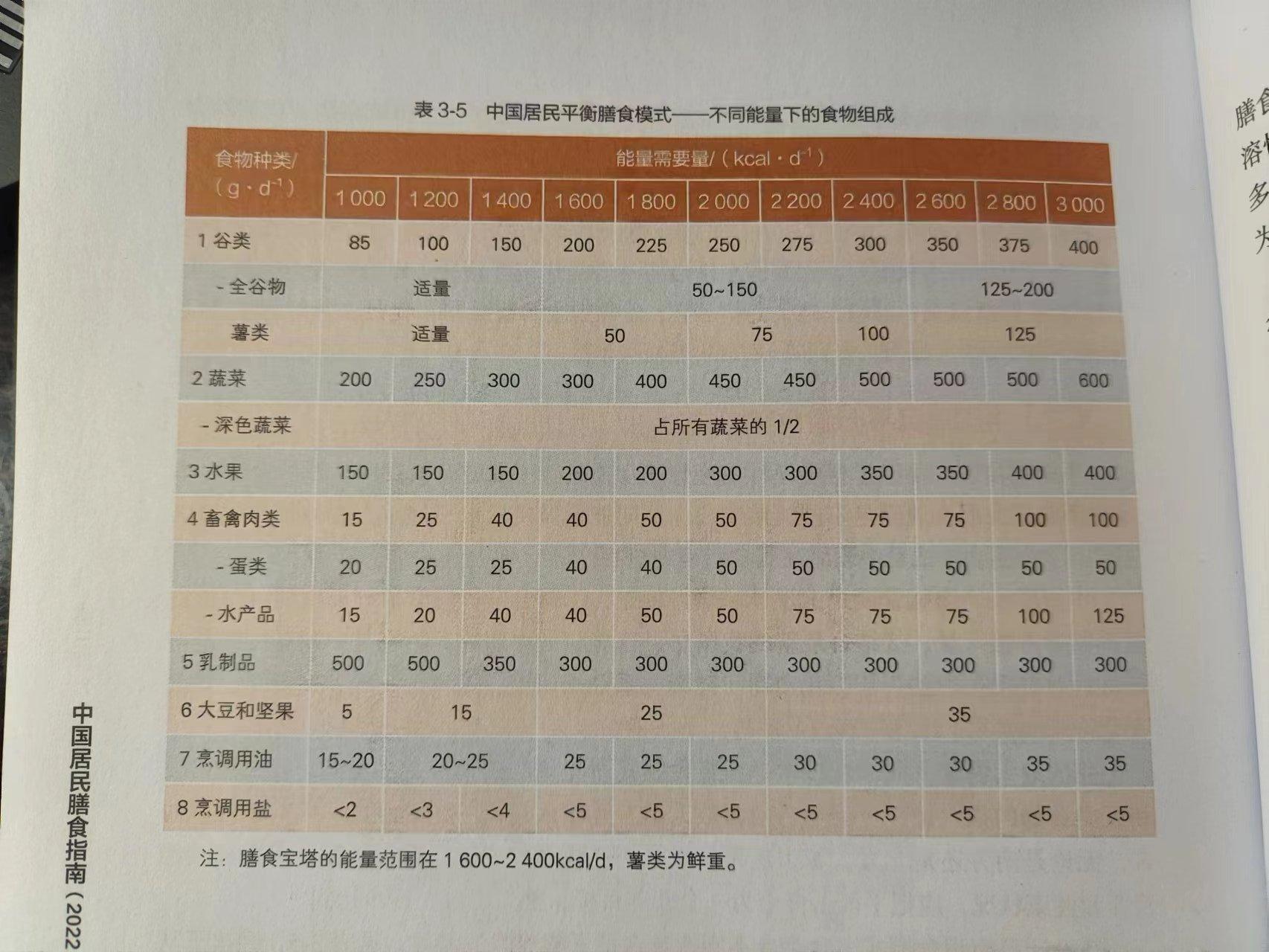 我们看一下膳食指南中,对应2000kcal的饮食方案中,