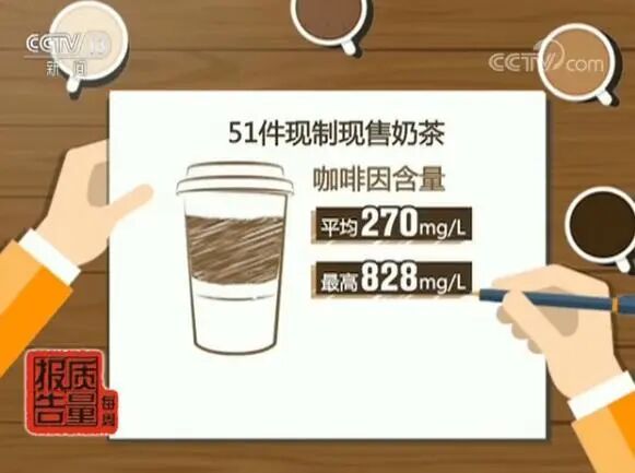 之前,某地的消费者协会对市面上的奶茶进行的检测,包括了喜X、奈雪のX、COCX、一点X等十大品牌,都检出了咖啡因,含量在106-365mg,平均含量为258mg。