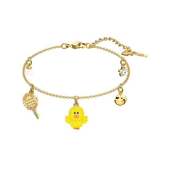 手链缀有网球莎莉、钥匙和星星等多枚吊坠,增加时尚点缀更吸睛。尾链根据手腕大小调节,满足多种人群佩戴。镶嵌闪亮的黄色仿水晶,为腕间增添吸睛亮点。
