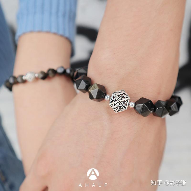 平安花 纯银饰情侣手链切面不规则金曜石黑玛瑙信物增强感情男友2020新款情侣甜蜜信物手链手串虎眼金曜石黑玛瑙天然水晶助事业