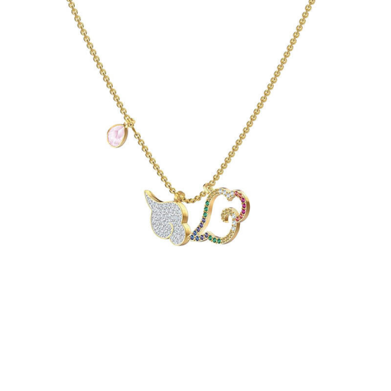 七彩祥云的项链,以西游记中的筋斗云为灵感设计,寓意十分美好;流畅的线条勾勒出十分细腻高雅的外观。辅以彩色的仿水晶进行镶嵌装饰,质感十足,且佩戴在脖颈之间很是亮眼。