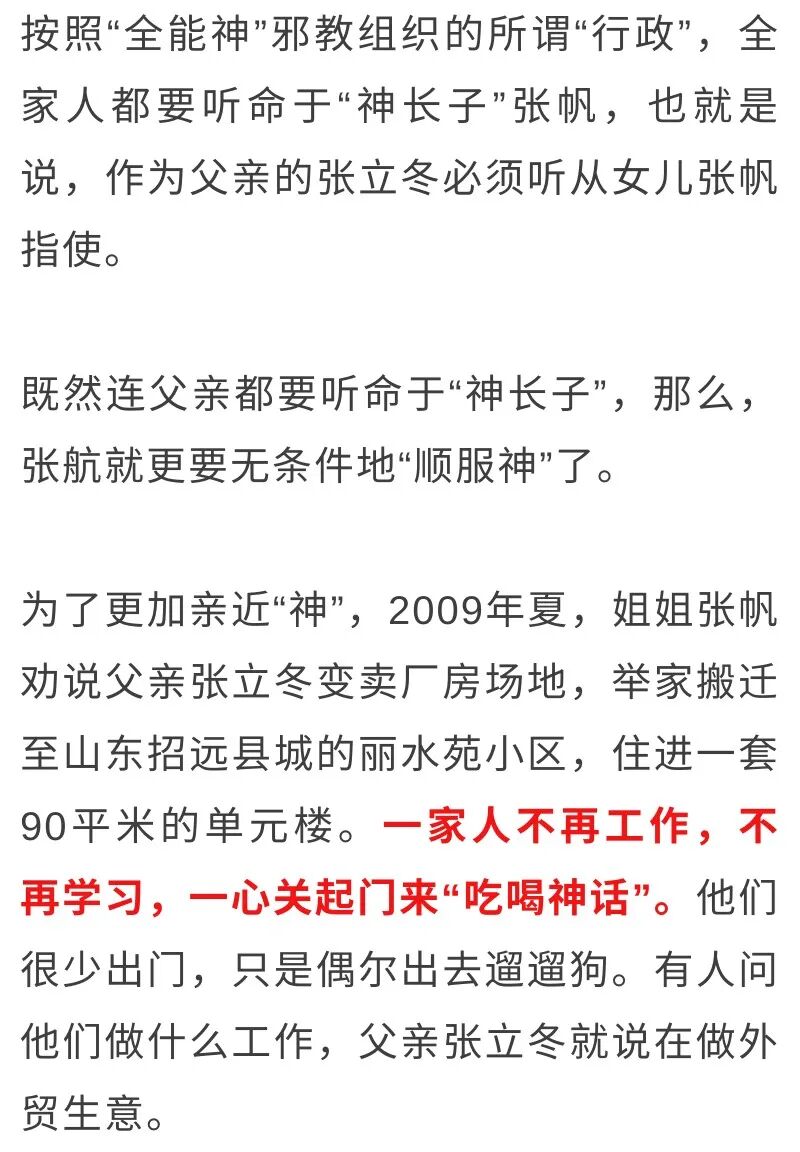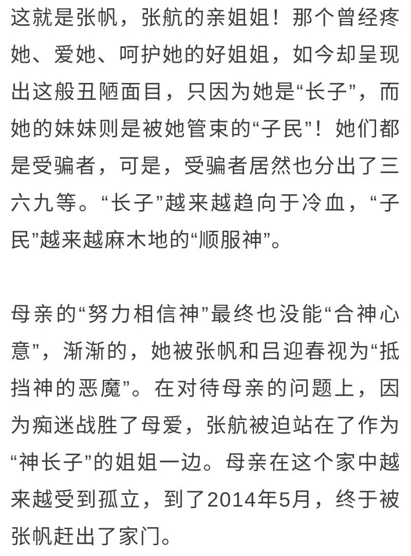我对张帆、吕迎春讲的众长子将来能上天不相信,吕迎春就说我们全家除了张帆以外都撒谎,不是真的相信“全能神”。吕迎春、张帆有时让我走,有时让哪个孩子走。我总是希望跟孩子们在一起,因此一直努力相信“神”。