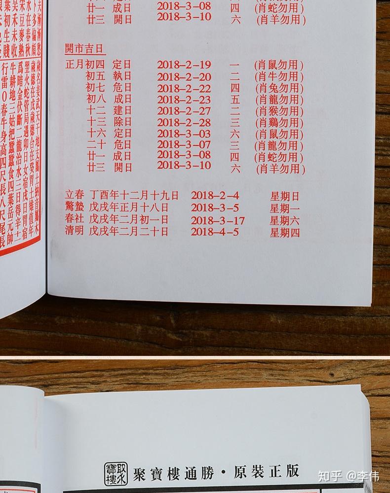 下面是香港出版的较有代表性的通书《聚宝楼》,书中几乎全是易学术数的内容,应该符合算命神棍们心目中的老黄历的形式了。从图中看出,戊戌年头的第一天是,正月初一。2018年的立春日,分明写着“丁酉年”,请问神棍们,你们不是说立春之后就是狗年了吗?这怎么解释?这个事实证明,真正严肃的现代老黄历,也没有采纳所谓立春说!