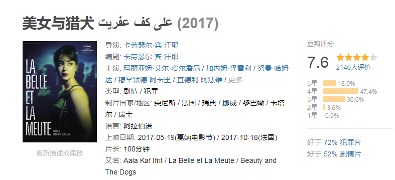 这是一部由突尼斯女导演拍摄的电影,17年受邀参加戛纳电影节入围了一种关注单元。