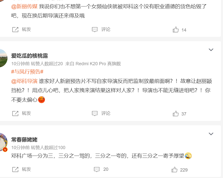 之前赵丽颖粉丝还专门跟邓科导演说特效好好做,他本人也回应“OK”。