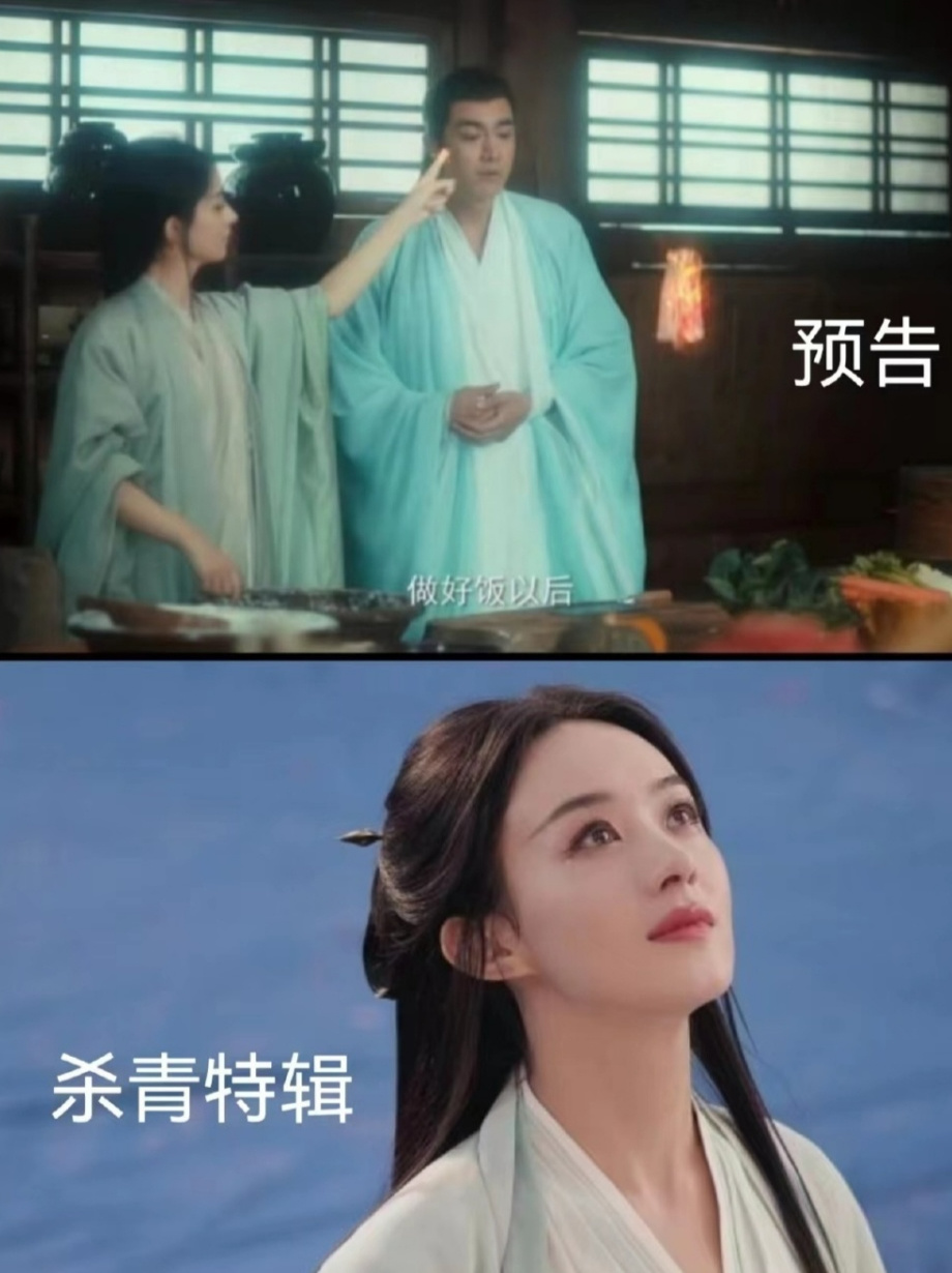 人家预告都有剧情线,配角都在,知道赵丽颖单抗这部剧的招商,直接预告片就剪了男女主林更新赵丽颖的花絮。