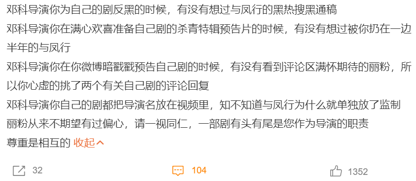 有人说因为《折腰》是导演自家公司的内戏,而《与凤行》是外戏,所以才会区别对待。小跟踪觉得不如说导演面对大咖和糊咖,只能区别对待。