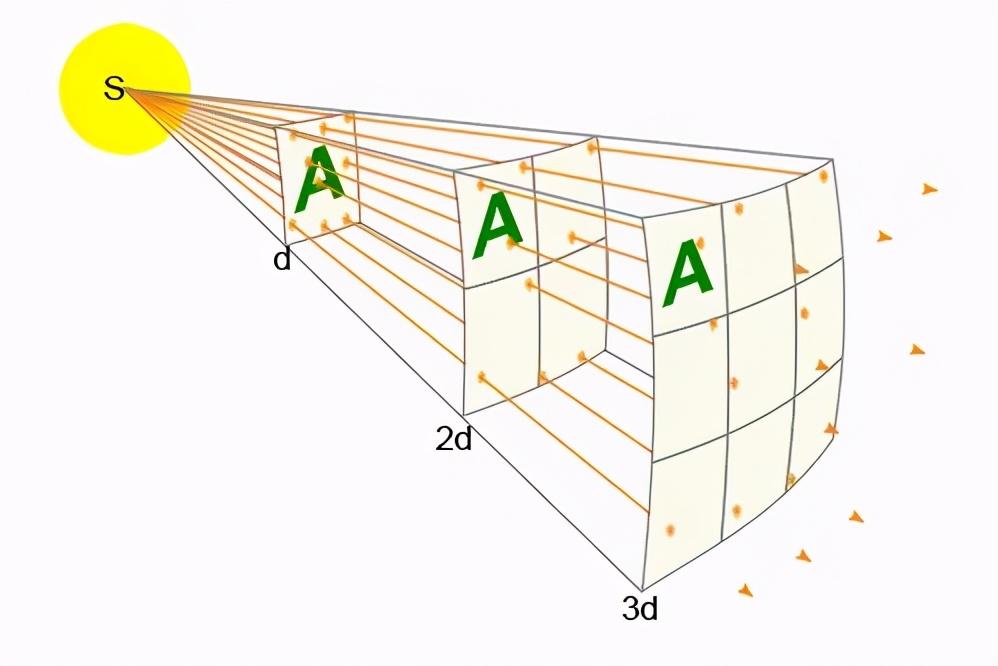 而现实世界是3维的。这就意味着,如果有个东西爆炸了,它释放出来的能量就会以球面的形式向外扩展。