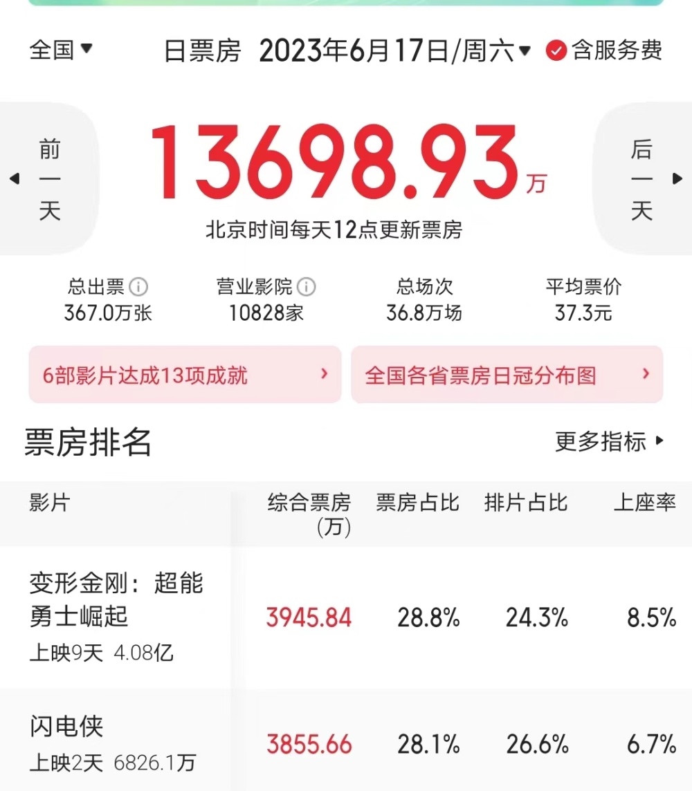 上映的第二天,也就是6月17日这一天,DC超级英雄大片《闪电侠》共收获了3588.66万人民币票房,相比第一天虽然多出了近1000万,但是这样的一种提升相对来说并不是很大,更何况在这一天它还输给了口碑同样不怎么样的《变形金刚:超能勇士崛起》。