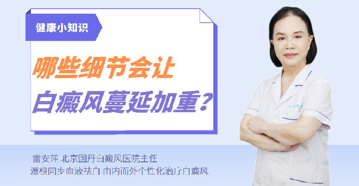 虽然白癜风这种疾病并不会影响身体健康,但是它却给患者带来了很多心理上的困扰。如果不注意一些细节,就有可能导致白癜风加重。下面由北京国丹白癜风医院雷安萍医生为大家讲解一下“哪些细节会让白癜风蔓延加重”的相关知识点。