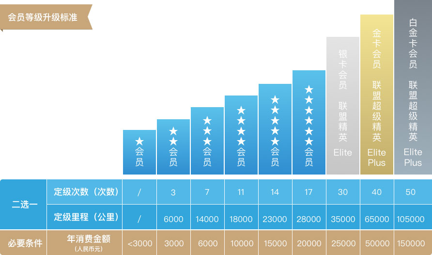 中国东方航空官网显示,白金卡会员为“东方万里行”最高级别会员,升级白金卡会员的必要条件是年消费金额15万元,以及定级次数为50次或者定级里程为105000公里。
