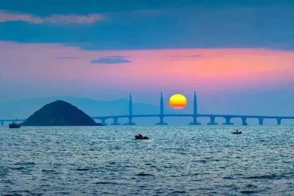 远处巍峨的港珠澳大桥,