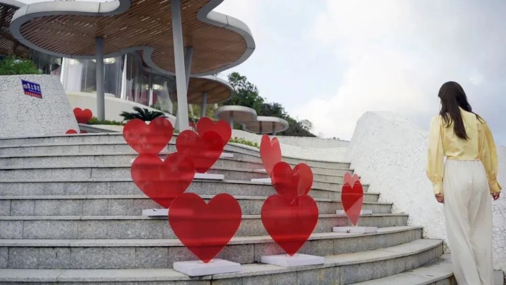 串园段的云栖驿站有个巨大的爱心装置,拾级而上,收获满满的爱意。