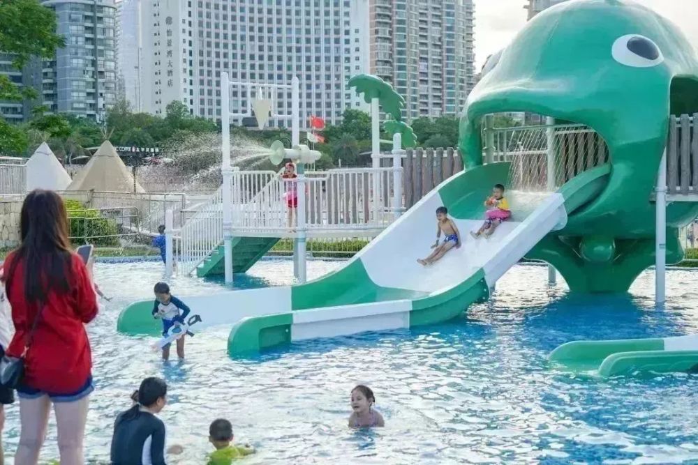 摩尔纹水寨,蘑菇伞、麻花、向阳花、花果树以及长颈鹿、青蛙、鲸鱼等十几种造型各异、充满童真童趣的戏水设备,10余条滑梯滑道,几十处喷水、叠水等设施,搭配夜晚泛光照明系统。在碧海蓝天下,打造无敌海景水上亲子乐园,解锁水上全新玩法。热浪湾·水乐园将成为情侣路又一个遛娃打卡点。