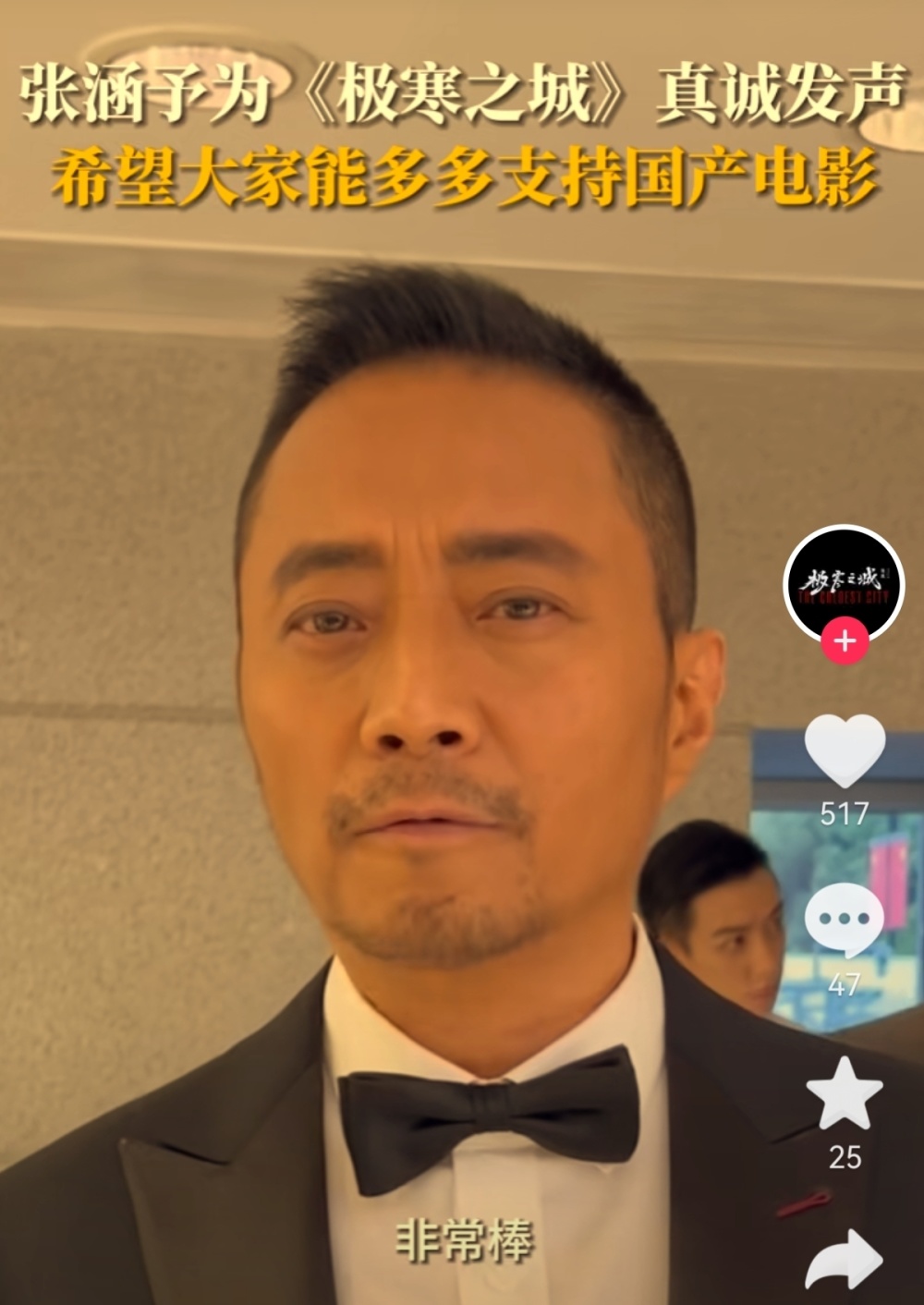 不仅在首映会上请来了李冰冰、乌尔善、黄建新等大咖助阵,电影上映后排片不佳时,他还叫来老朋友张涵予帮忙,专门拍了一段视频帮《极寒之城》求排片。