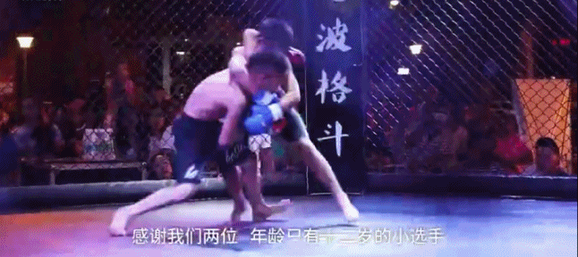 两个只有12岁的孩子,在八角笼里狠狠地抱摔,场面略显残忍。