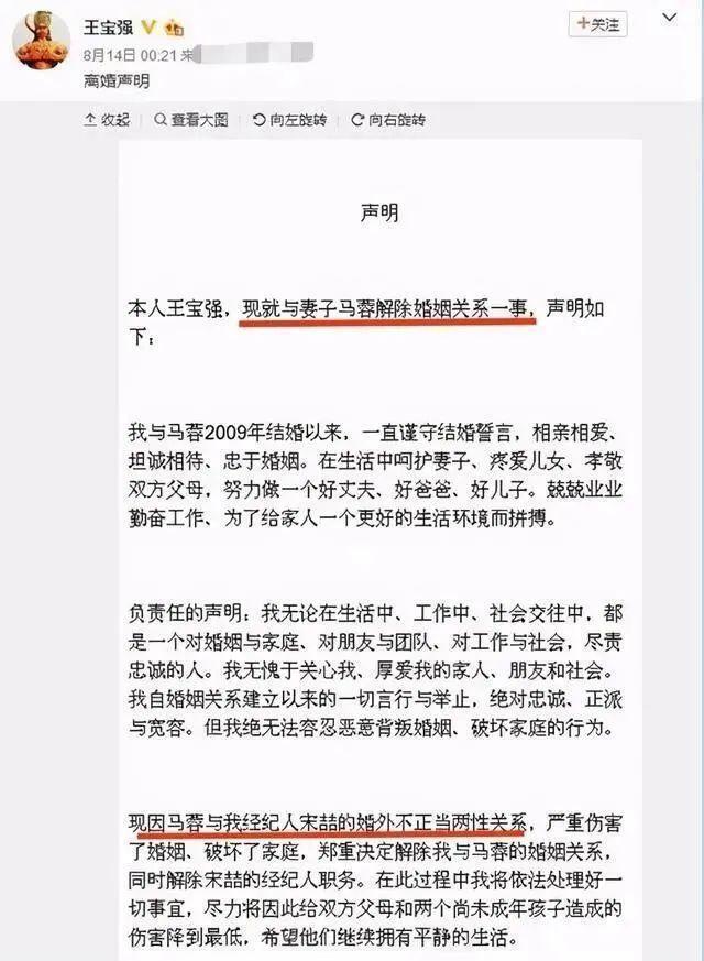 2016年,王宝强发布离婚声明,曝光妻子马蓉和经纪人宋喆发生不正当关系,转移走自己的财产。