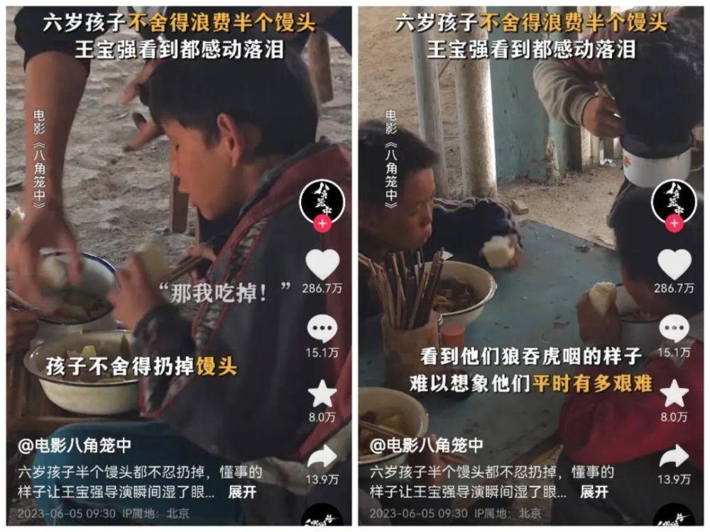 有场戏只需要孩子吃半个馒头,一个六岁孩子因为不舍得浪费,直接吃掉。