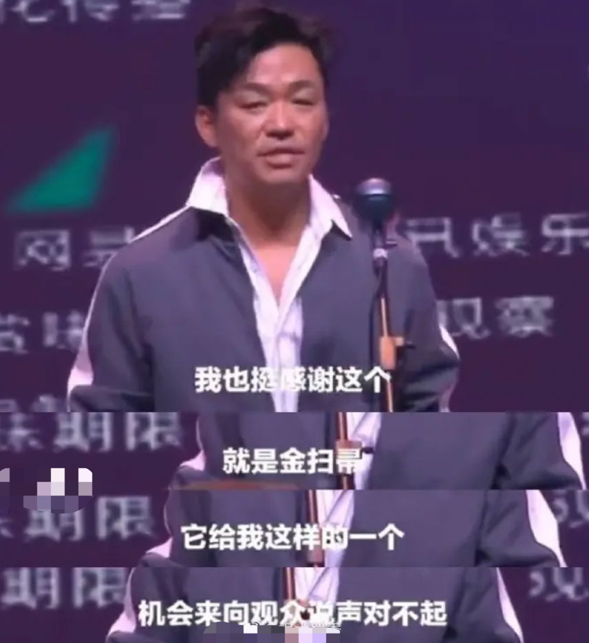 “我也挺感谢金扫帚,给我这样一个机会,来向观众说声对不起。”