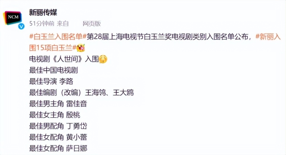 上个月,备受期待的上海电视节白玉兰奖公布了入围名单,《人世间》《狂飙》《开端》等多部作品入围,使得本届的白玉兰成为竞争最为激烈的一届。