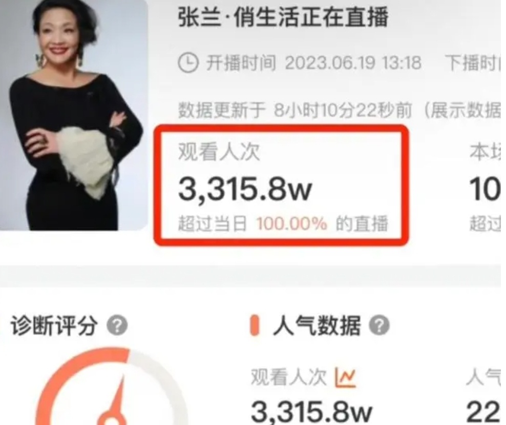 直播间涌进3000多万名观众,观看人数最高达到3315.8万。大家抱着看热闹不嫌事大的心态看张兰各种内涵。