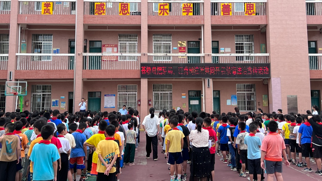 为进一步加强未成年人对毒品、电子烟危害的认识,提升未成年人的安全防范和健康保护意识,6月26日, 苍梧县司法局旺甫司法所联合苍梧县烟草专卖局走进旺甫镇中心小学开展禁烟拒毒宣传进校园活动。