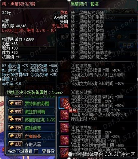 装备契合度:输出上有幽魂魔战、下有契约套,不能输出做大师球混团。