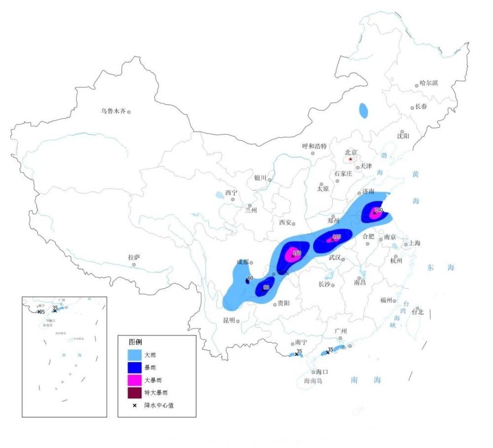 (07月03日14时-04日14时全国强降雨落区预报图)