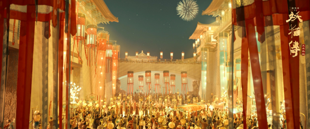 物质上的奢华繁茂是这类作品表达的主基调。如《长安十二时辰》中的巨型中元节花灯;《妖猫传》中的花萼相辉楼等。以至于在不少观众印象中,关于唐朝的记忆早就模糊成了盛唐的模样。