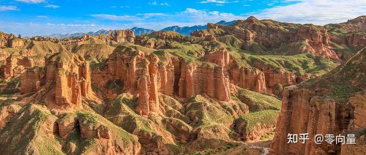 约510多平方公里的丹霞地貌,在阳光下映射下,红、黄、橙、绿、白、青灰等多种颜色点缀沟壑山丘间,从不同角度看色彩各不同,除了震撼二字,难以形容。据说马可波罗曾醉情于此,停留一年之久。